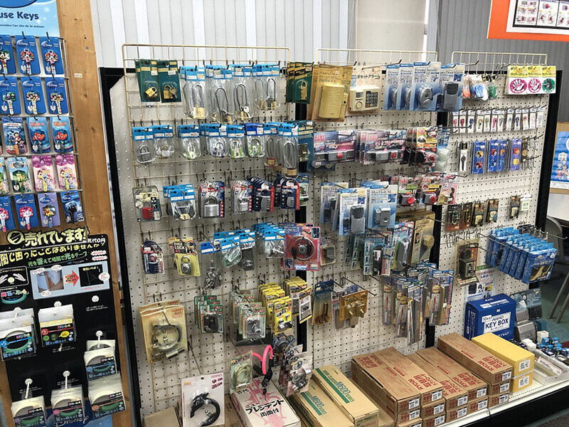 南京錠・金庫・防犯カメラも取扱があります。店頭にデモ機の展示もしておりますので是非お立ち寄りください。